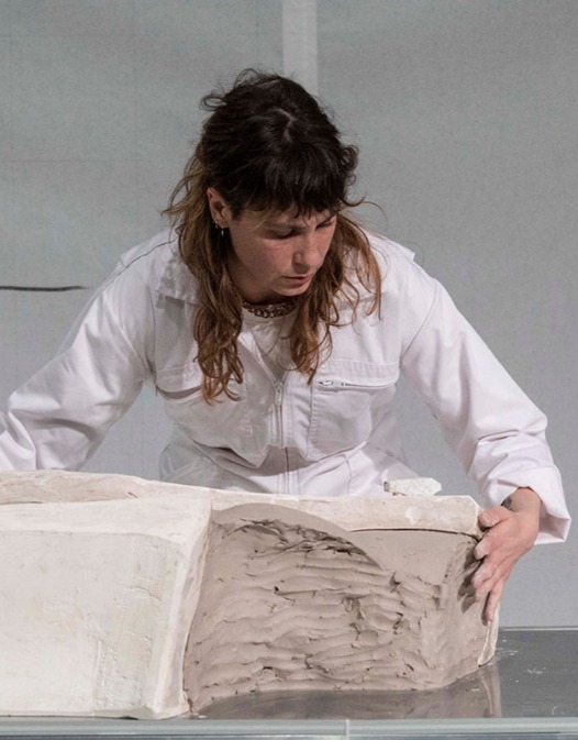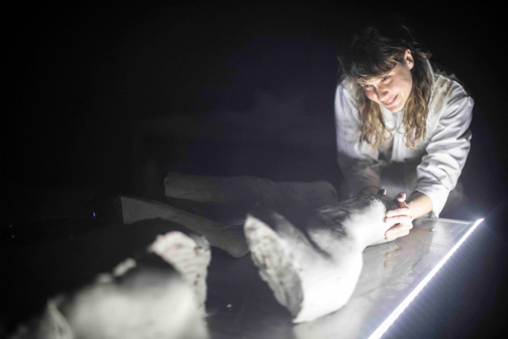 Le moulage est un geste qui ressemble étrangement au soin des morts: on immobilise, on prend une empreinte, on modèle. C’est un acte à la fois technique et intime. J’ai voulu que le public assiste à cette fabrication progressive d’un corps en argile, comme pour déconstruire la peur qu’il inspire.