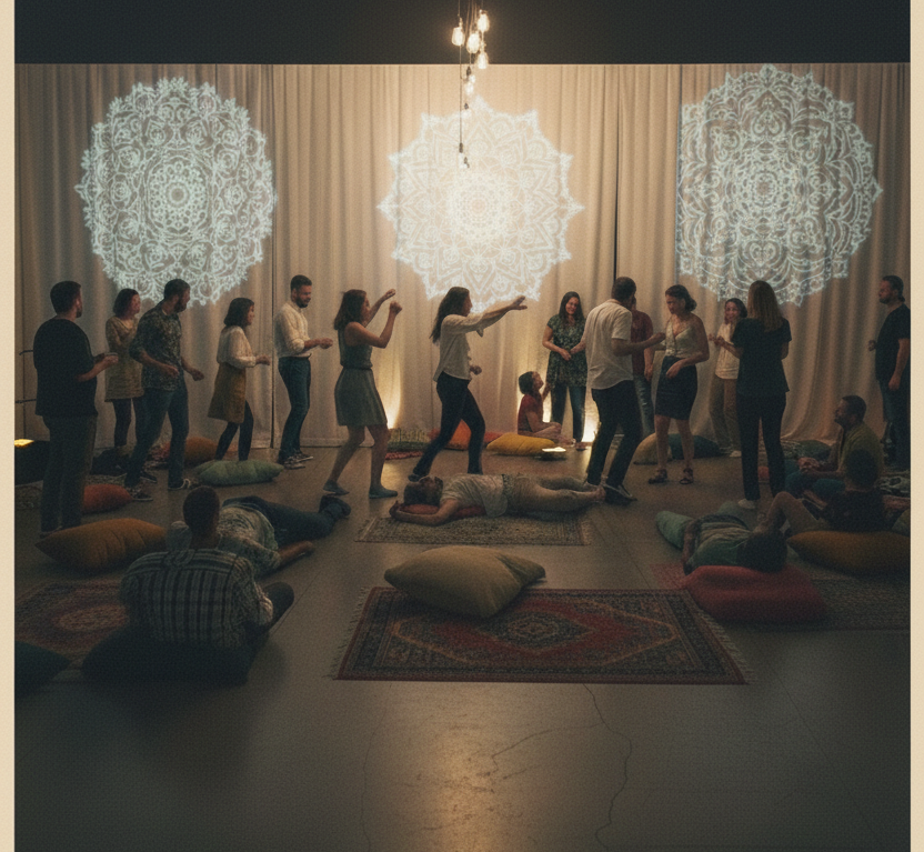 Le Théâtre La Traverse est transformé pour l’occasion en espace d’écoute et de mouvement rideaux scénographiques, projections visuelles inspirées de géométries lumineuses et diffusion sonore multi-enceintes spatialisée.