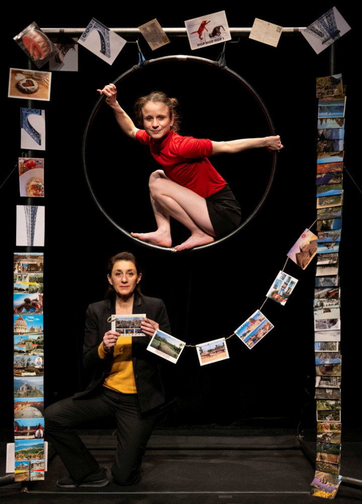 Le premier mouvement évoque le goût du voyage transmis entre générations, à travers des cartes postales et un cerceau aérien.