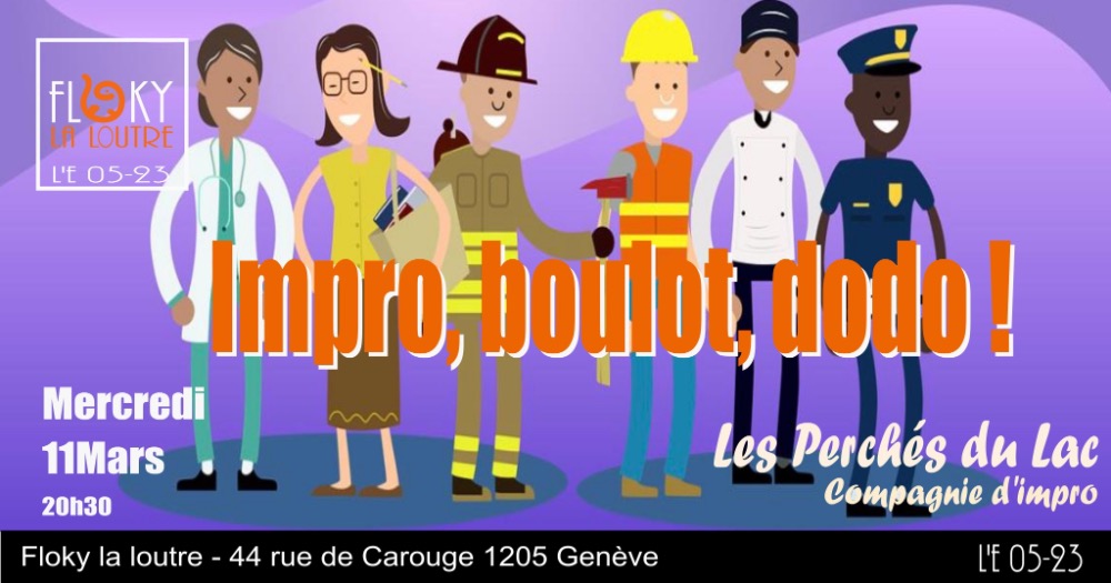 Les Perchés du Lac présentent Impro, boulot, dodo, un spectacle à découvrir le 11 mars 2026 chez Floky La Loutre, Genève.