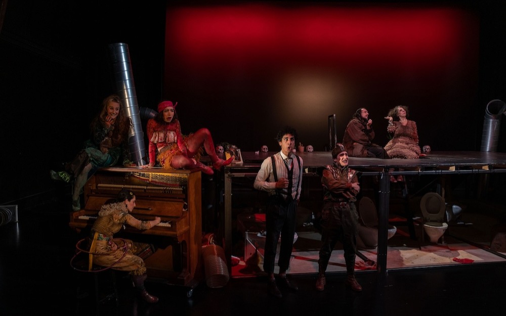 Cette dimension grotesque et pourtant tragique, qui mêle le jeu et la cruauté, Gabriel Alvarez la restitue en offrant un cadre forain à la fable de Jarry. Pour briser le rythme militaire, si prompt à faire marcher les foules, les comédien·ne·s s’emparent d’instruments et orchestrent avec malice la sarabande mortifère.